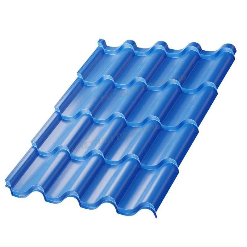 Насыщенный синий цвет добавляет индивидуальности зданию, повышая его рыночную стоимость. Профиль имитирует натуральную черепицу, но без ее хрупкости и веса.